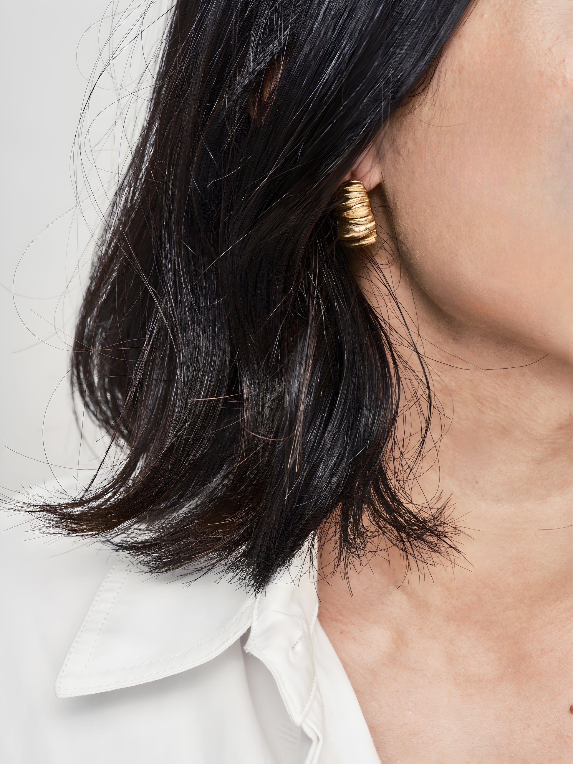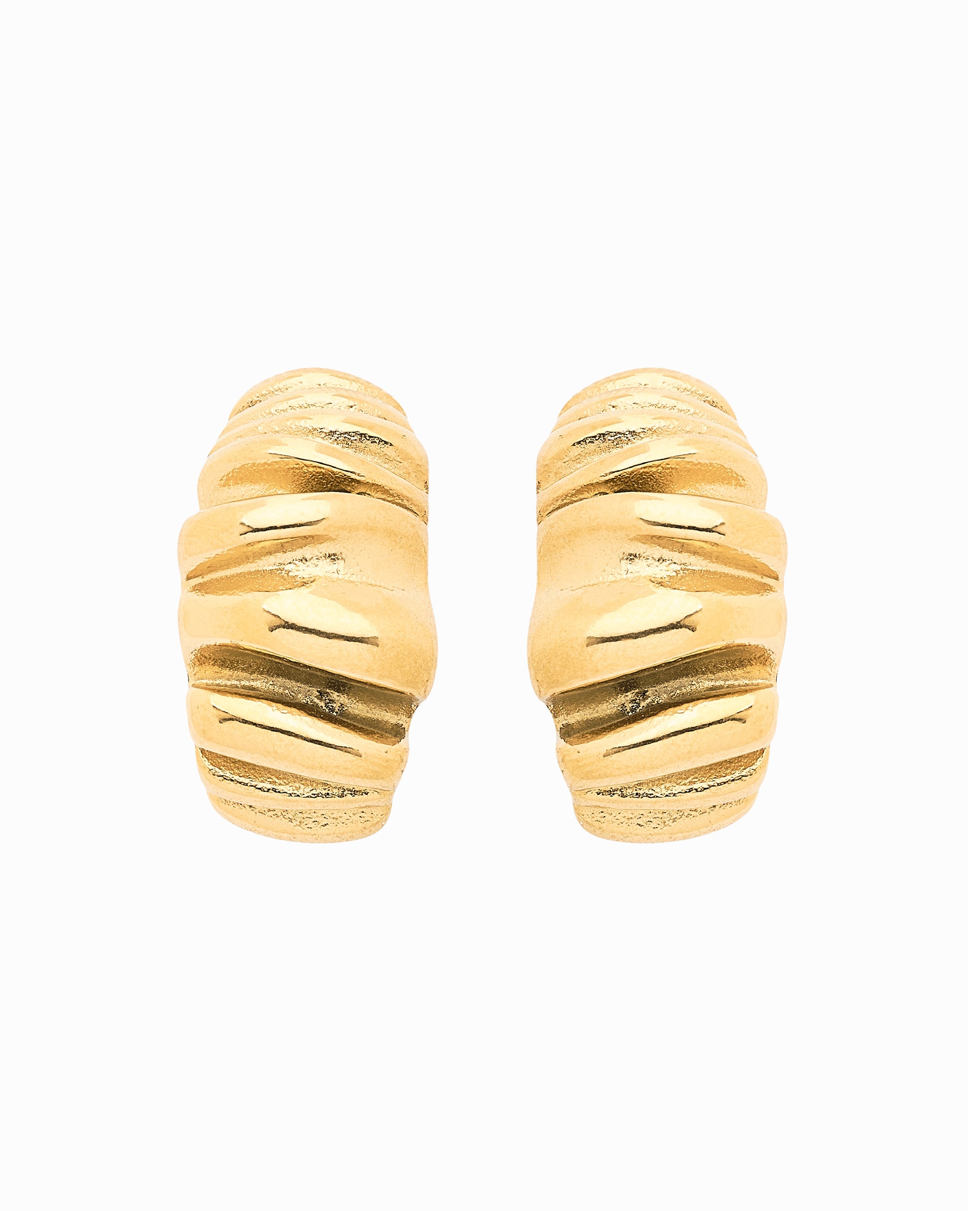 Introducing the statement hoops you've been waiting for. Mid-sized for everyday wear with enough interest to keep you reaching for them time and time again. Crafted from 18k gold plating. Finished with classic butterfly backs.