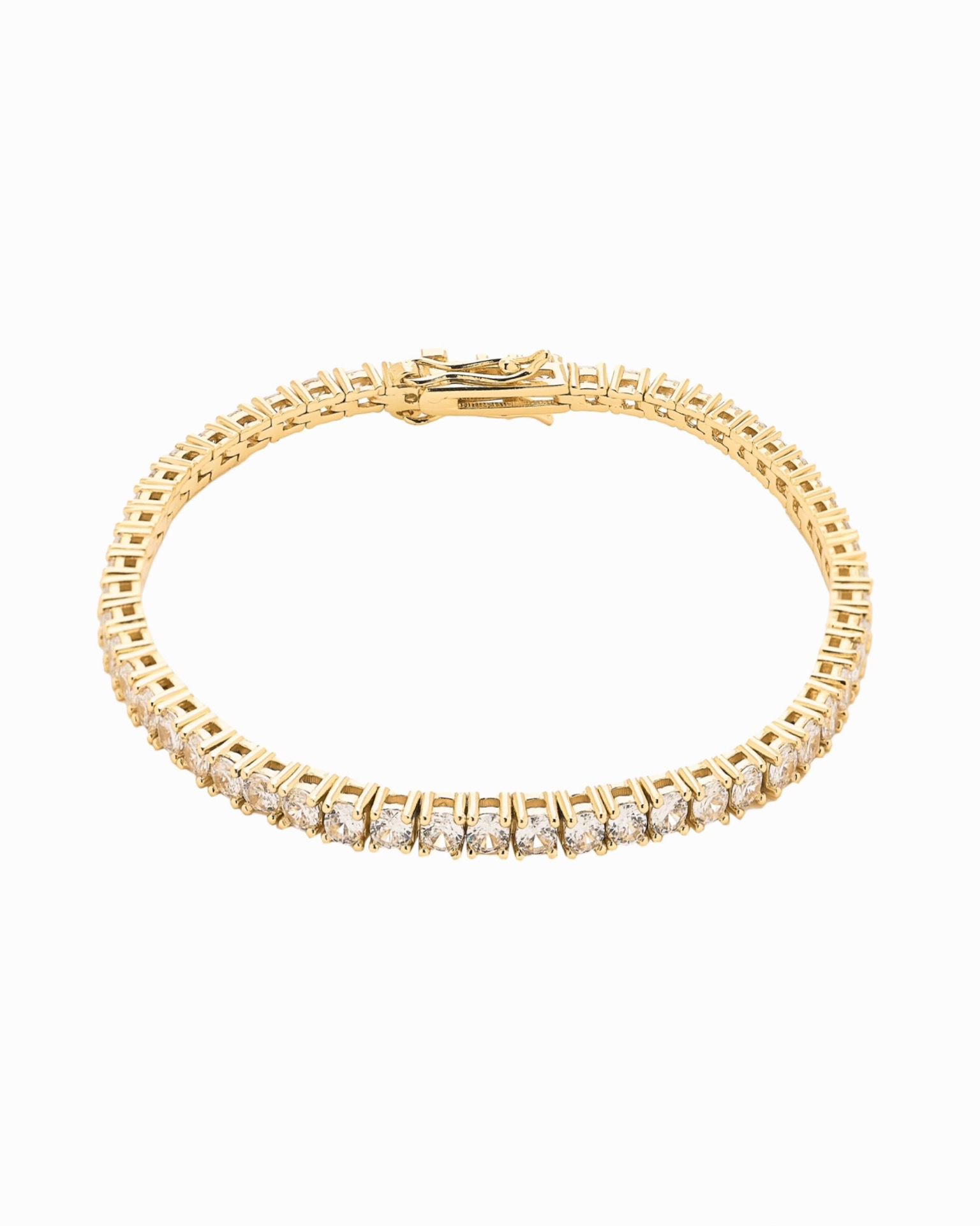 This shimmering Tennis bracelet delivers the classic combination of dazzling clear stones and cool rhodium plating, an enduring look that never goes out of style. Each of the crystals wonderfully reflects the light, ensuring your wrist is eye-catching at all times. Enjoy this timeless piece of jewellery for yourself or consider it as a beautiful gift idea.