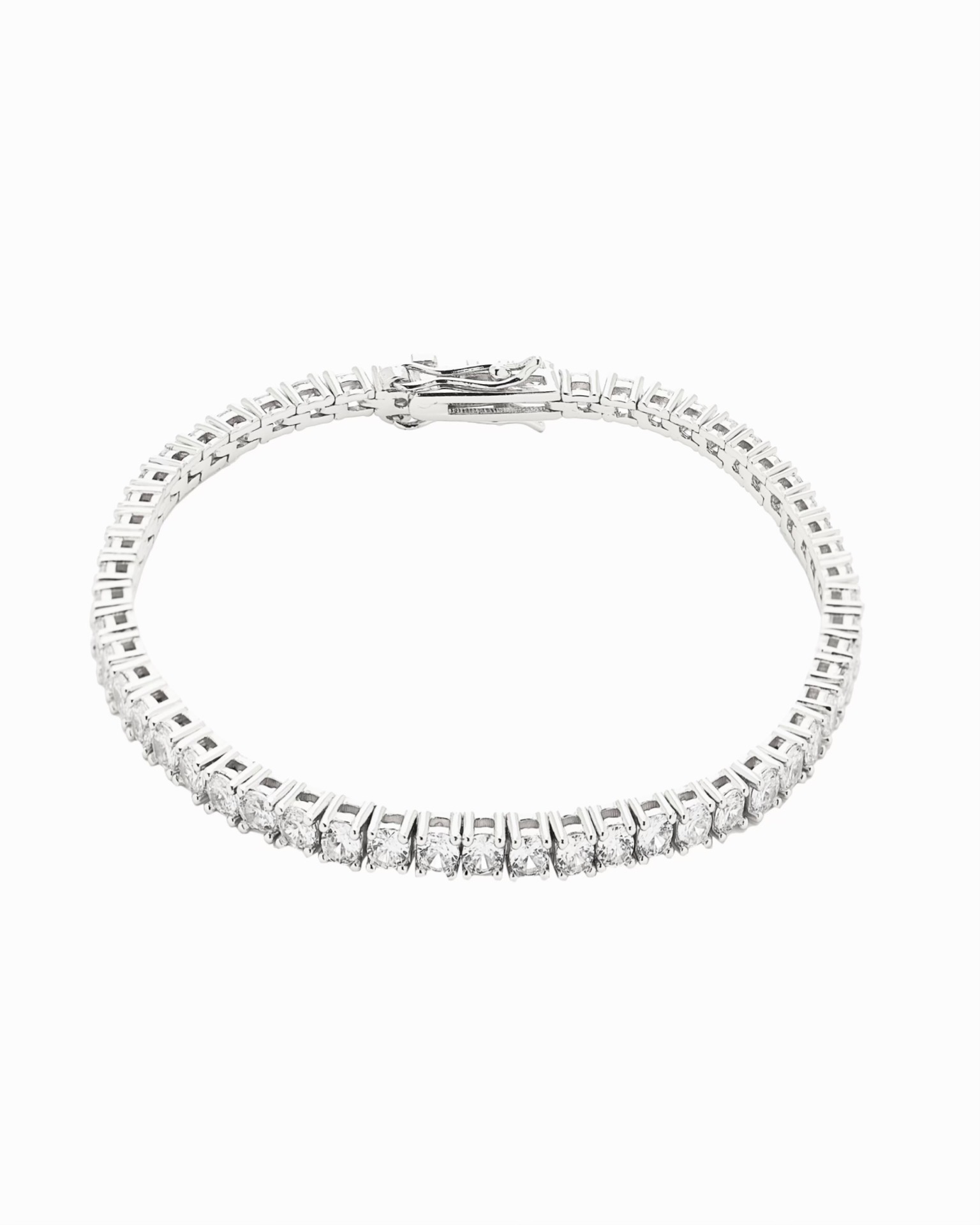 This shimmering Tennis bracelet delivers the classic combination of dazzling clear stones and cool rhodium plating, an enduring look that never goes out of style. Each of the crystals wonderfully reflects the light, ensuring your wrist is eye-catching at all times. Enjoy this timeless piece of jewellery for yourself or consider it as a beautiful gift idea.